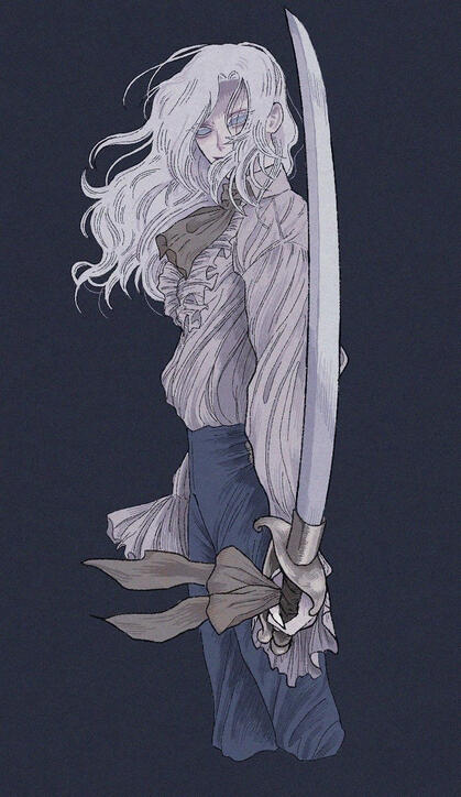 Height: 5'11.5 on land; 9'10 including tailWeight: 162lb; 680lbHair Colour: White (varies with glamour)Eye Color: Light blue, streaked with grey (varies with glamour)Complexion: Fair, unblemishedGeneral Health: Physically speaking, Fors' in her prime. They're breaking former swimming records, their illusionary glamour stays on for almost a full day, and the handle of a sword no longer feels foreign within their grasp. Fors has never felt stronger. The occasional bout of loneliness does still strike them, but the journey along vast open water is sure to be a fitting distraction. It has to be.Piercings: None intentionally, but their left ear fin has a notch taken out by a fishing hook. In her human form, she repurposes that hole into a helix, often wearing a gold cuff in it.Tattoos: None.Build: Ecto-Mesomorph. A tall, slender frame; androgynous. Resting beneath loose-fitting textiles are broad shoulders and defined limbs, as well as slim-toned abs (think 11-line abs).Scars: A couple of faded nicks spread out miscellaneously (knuckles, arms, navel, fin, etc).Dominant Hand: Ambidextrous, but prefers her left.Distinguishing Features: White lashes frame ghastly hues that resemble the looking glass, contrasting the single brown mole that dots the apple of their cheek below her left eye. Fors prefers to leave their nails long — stiletto-shaped claws are better suited for hunting. As a product of the constant application of glamor, her features seem to be ever-changing; there’s always something a little off each time you see them. The only time you’d be able to catch a glimpse of their unadulterated face would be if they dispel the illusion intentionally or not, or when they’re asleep. In their merfolk form, they sprout an impressive tail (white in colour, but opalescent in the light), her fingers are webbed, and iridescent lamina climbs the sides of her body; patches of shimmering scales appear on forearms and biceps, sporadically wrapping around the width of their chest and scattered along their navel (for this reason, Fors forgoes any sort of top in this form).